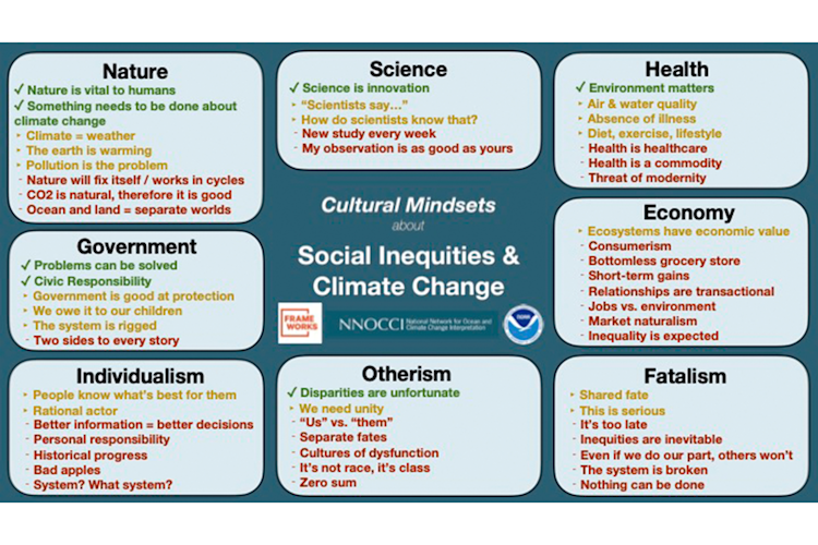 As communicators, educators, and storytellers, we aim to engage our audiences with messages that entertain, inform, and inspire action. Sometimes, however, our audiences interpret our messages differently than we intended. Especially when it comes to environmental issues such as climate change, knowing what people come to us with - their mental mindsets or preconceived thoughts — can help us shape messages that resonate and navigate tough conversations. Social science research and communication strategies built on data are our friends!