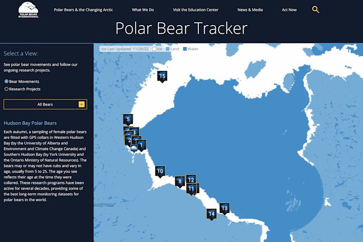 Your support of our outreach efforts includes innovative tools like the Polar Bear Tracker on our website. It consistently ranks as one of the 5 most popular pages on our website, with visitors checking out the movements of 15 wild polar bears in Western and Southern Hudson Bay in relation to changing sea ice coverage.