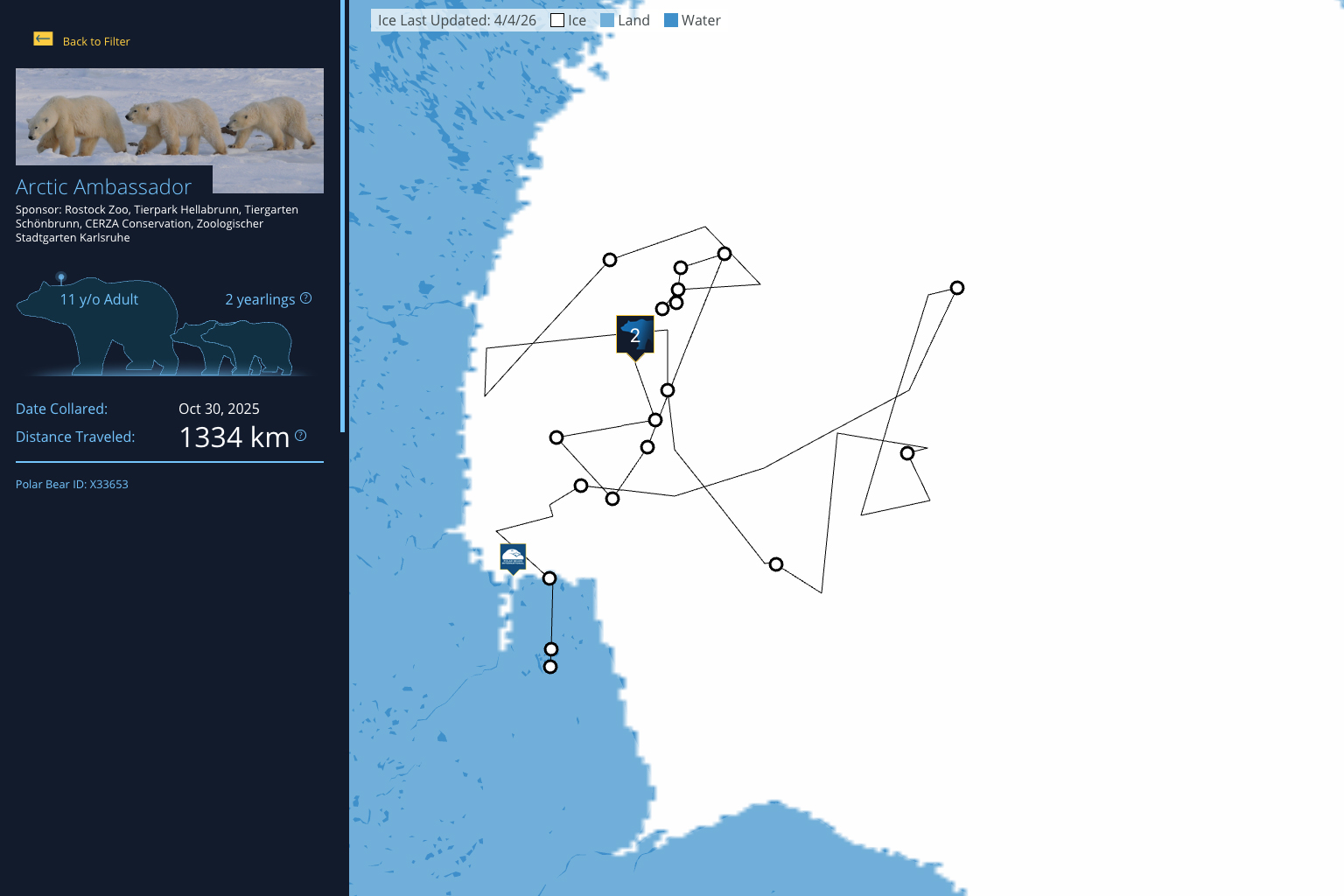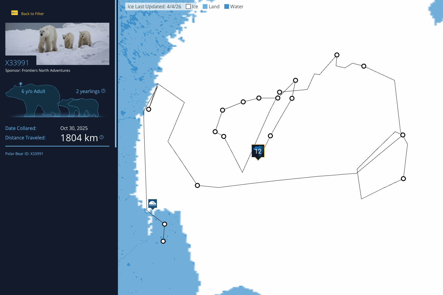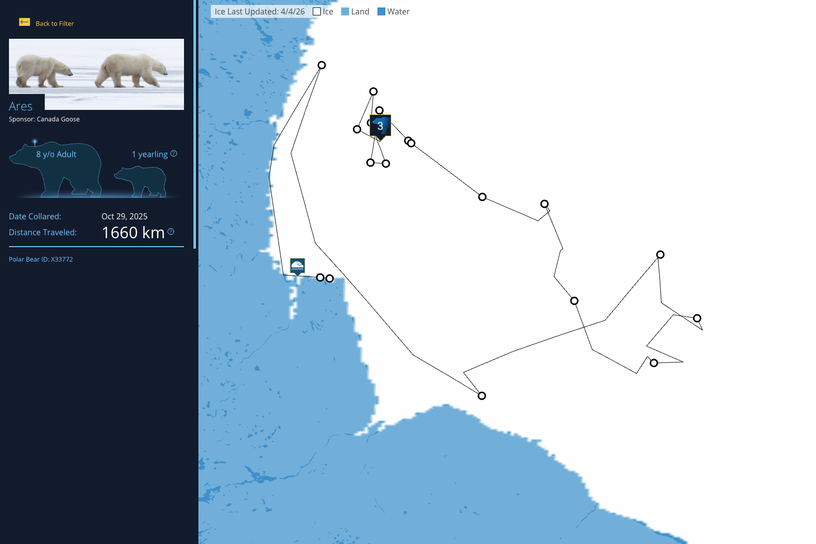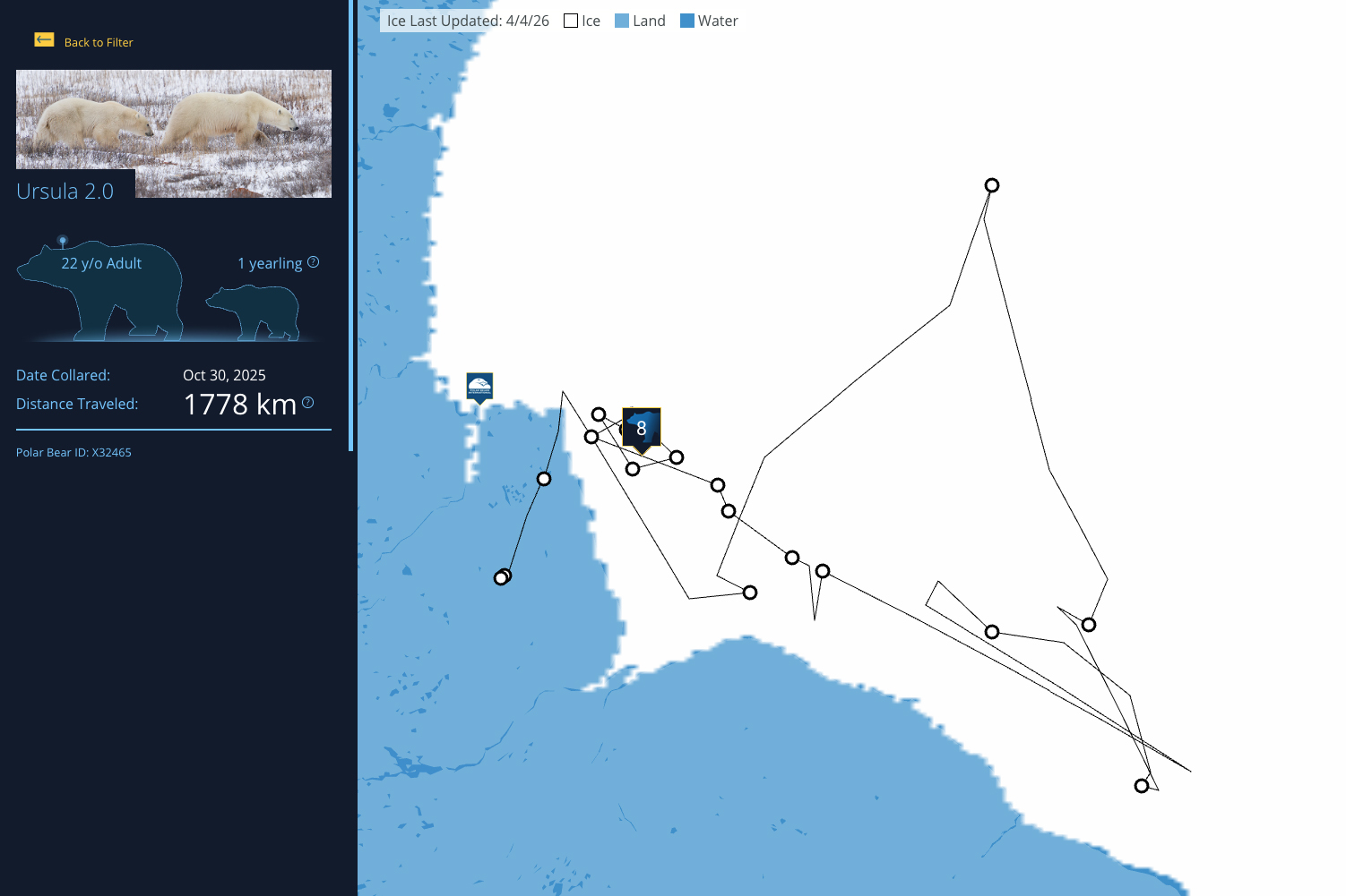 Each year, the Polar Bears International Bear Tracker follows a subset of GPS-collared female polar bears in Hudson Bay. By monitoring these movement data, scientists can determine when and how polar bears use their sea ice home, helping us better understand what the species needs to survive and thrive.