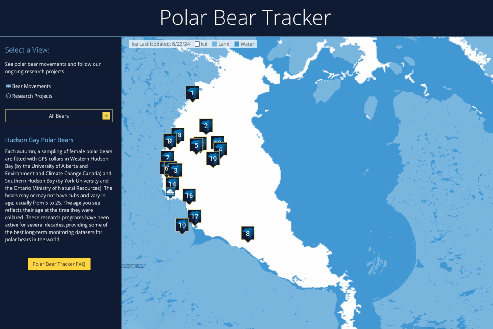 Vicky seems to have slowed down her large movements, but has stayed on the move in a smaller region north of Churchill. She’s been circling a particular area this spring, which likely means it was a great spot for seal hunting! Vicky would have weaned her offspring this spring and mated soon after. So, she really needs to be packing on the weight now, potentially hundreds of pounds, in anticipation of a long summer and fall ahead. When she returns to land she will be facing around eight months of not eating while she dens, gives birth to, and nurses cubs in a den. Once onshore, she won’t be eating seal blubber again until next March! However, even though she likely mated this spring and will be eating as much as possible, Vicky is not technically pregnant yet. Though she may be carrying a fertilized egg or two, she first needs to get fat enough for any eggs to implant this fall - a process known as “delayed implantation.” If she doesn’t maintain enough body fat to carry a healthy pregnancy, her body will reject the zygote(s) and she’ll try again next fall. Based on her movement patterns, we predict she’s eating a ton. It’s just a matter of how long the ice lasts and how much weight she can keep gaining until she’s forced back to land and heads back closer to Wapusk National Park to (hopefully) den for the fall. Good luck to Vicky, we look forward to following the next chapter of her journey!